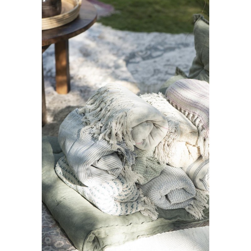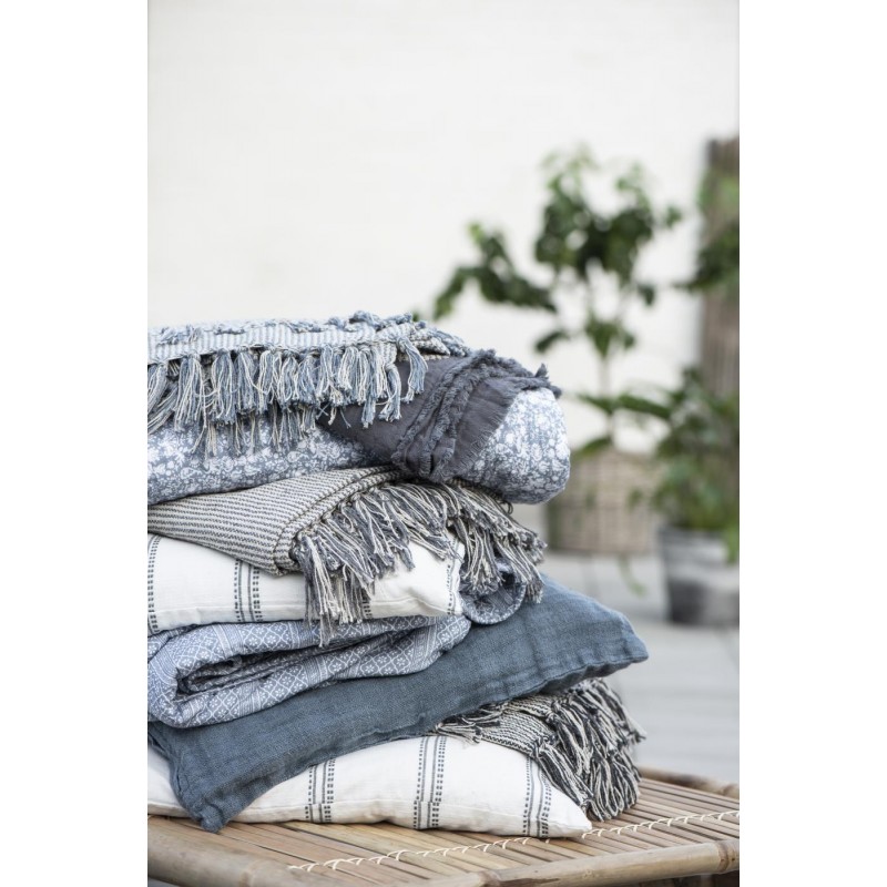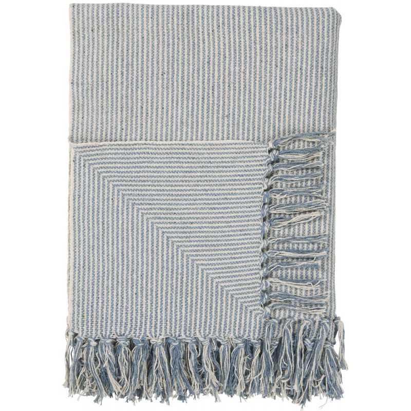 ib laursen plaid coton raye bleu clair franges style bord de mer