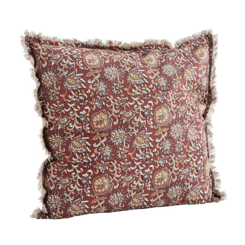 madam stoltz housse de coussin coton imprime fleuri rouge franges
