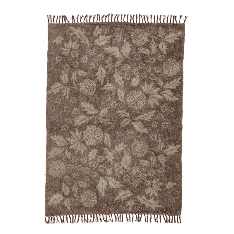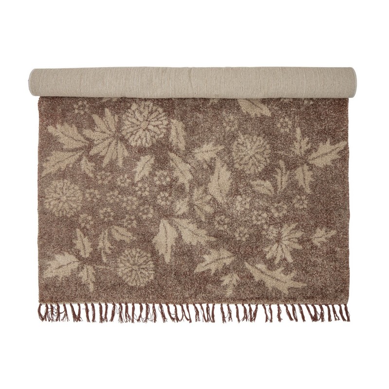 bloomingville tapis coton moelleux motif fleuri brun marron franges