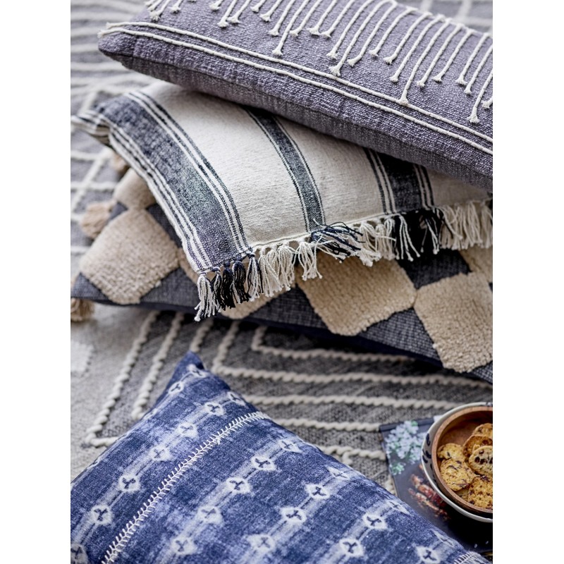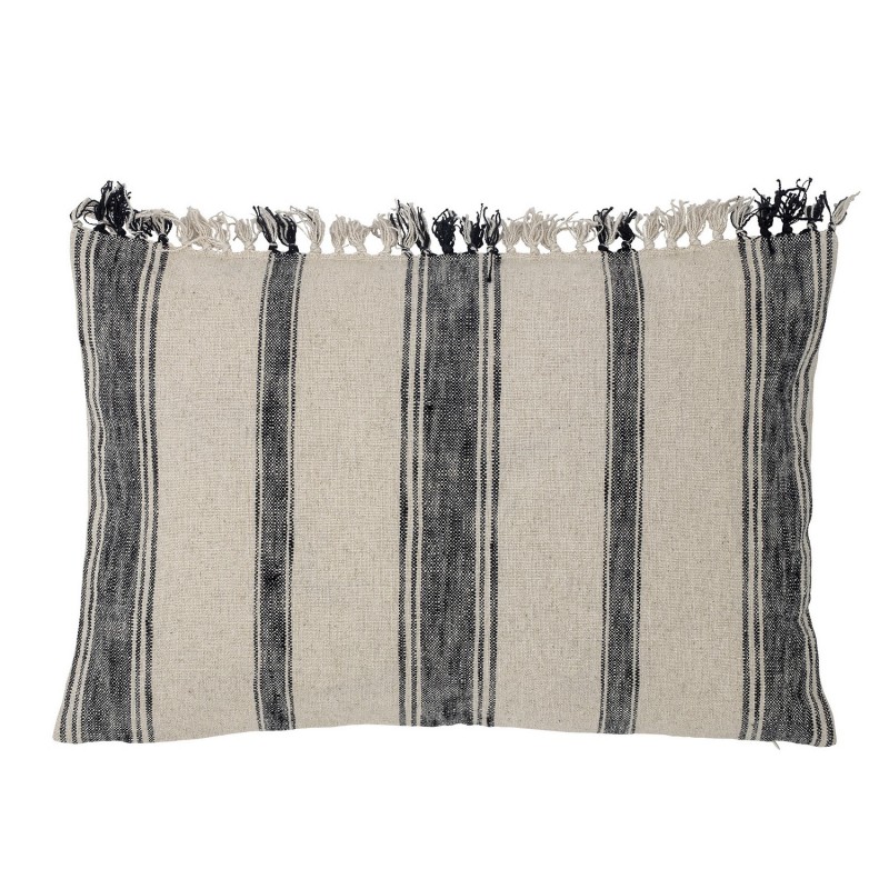 bloomingville coussin rectangulaire coton blanc noir raye franges