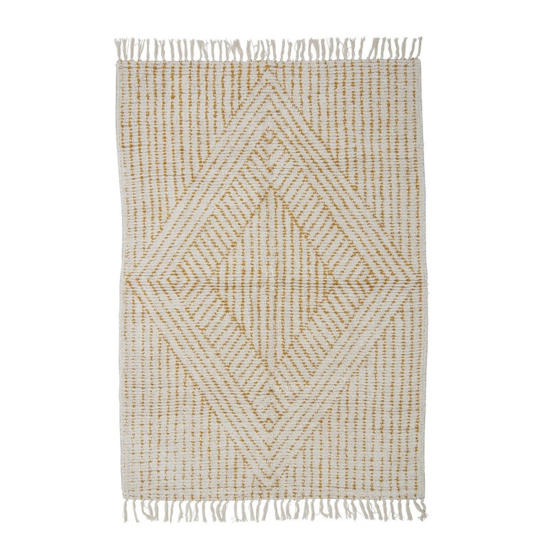 bloomingville tapis coton blanc ecru jaune motif stephi