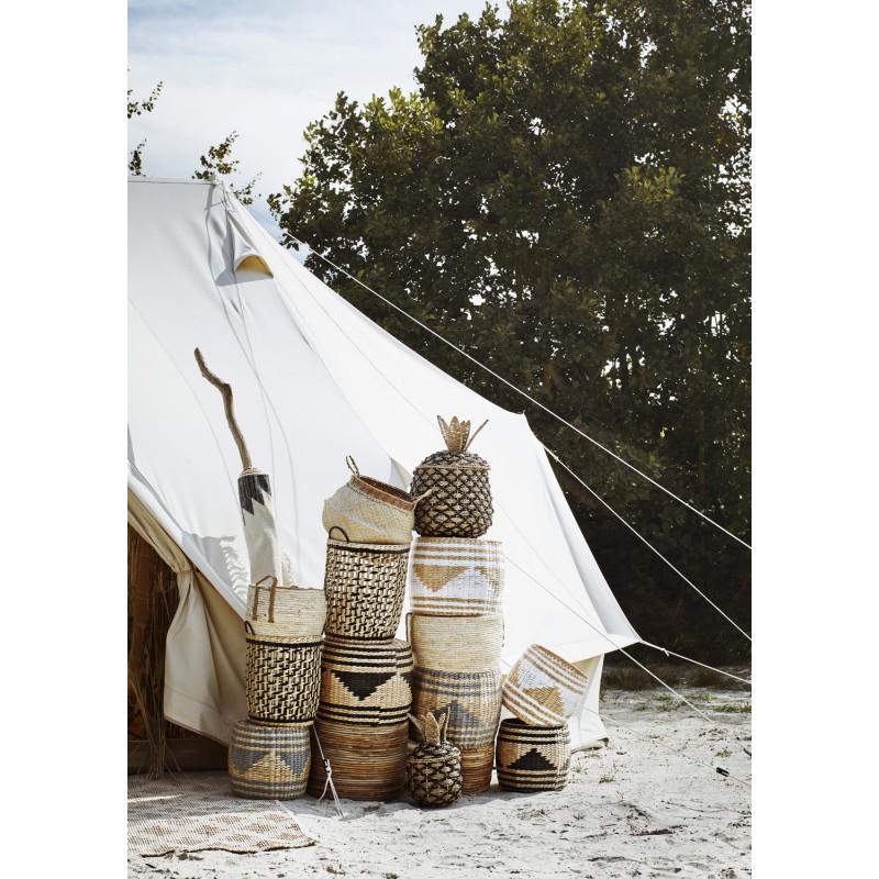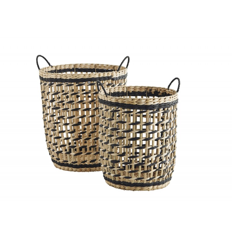 grand paniers tresses ajourés jonc de mer papier noir naturel set 2