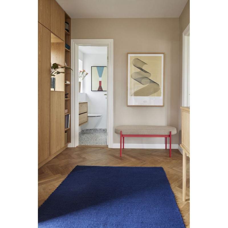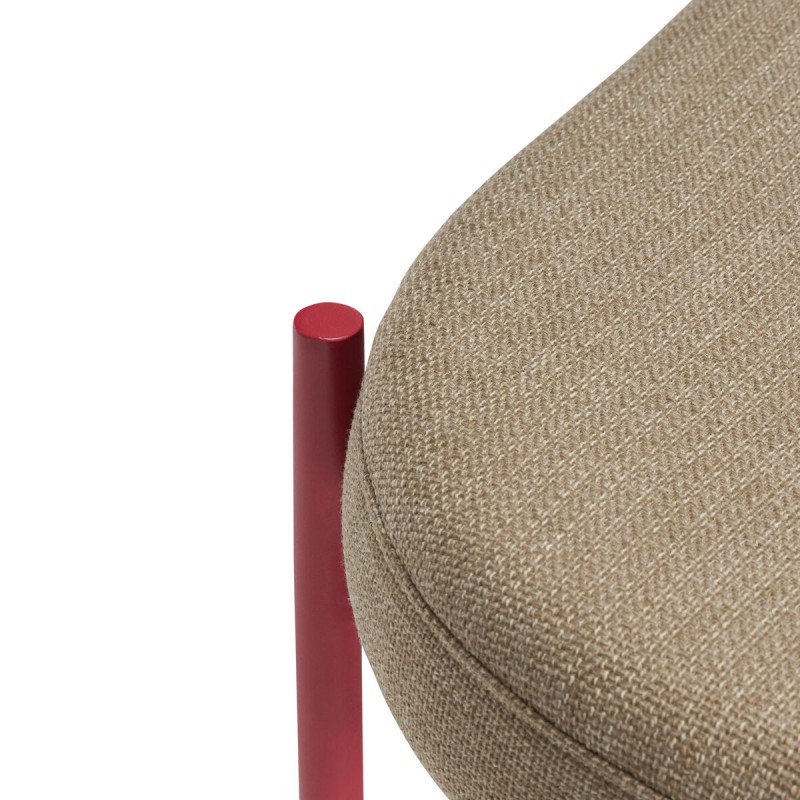 banc design rouge metal tissu beige sable mousse hubsch klint