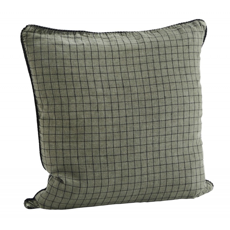 madam stoltz housse de coussin lin carreaux vert fonce 50 x 50 cm