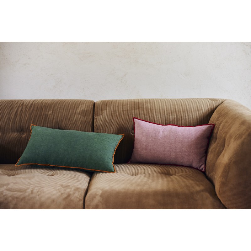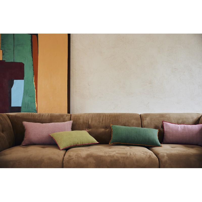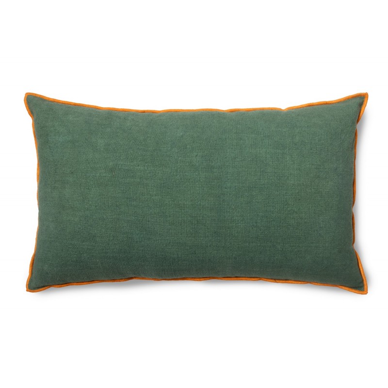 coussin canape rectangle vert orange lisere lin coton hkliving
