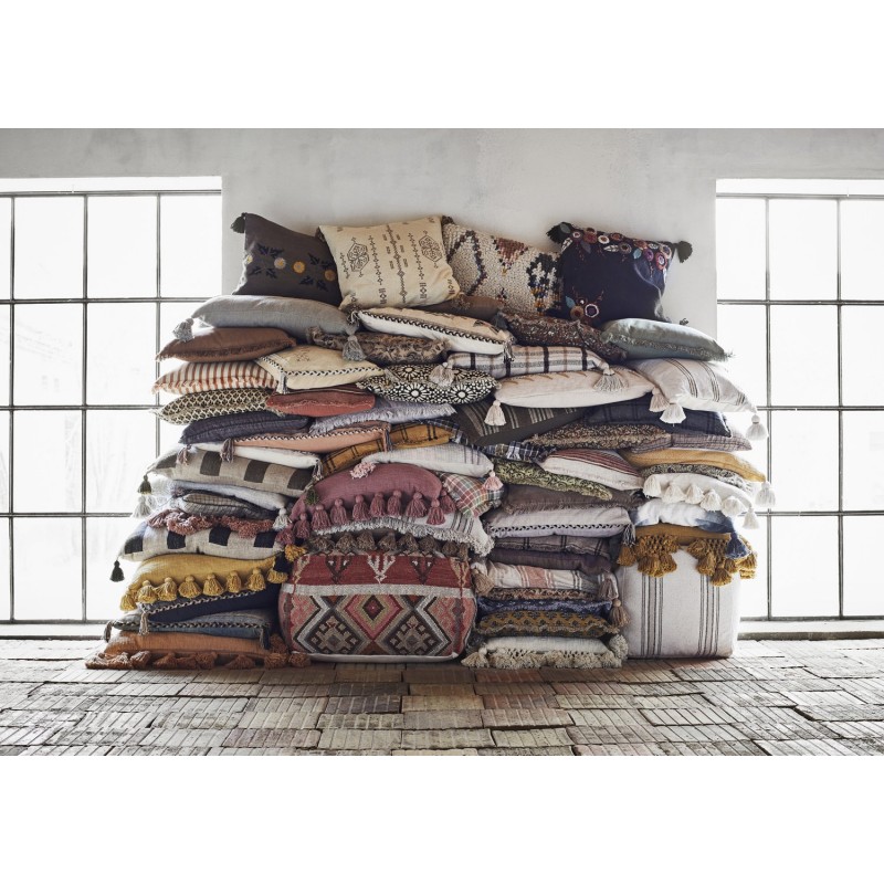 housse de coussin boho brode fleuri coton noir madam stoltz