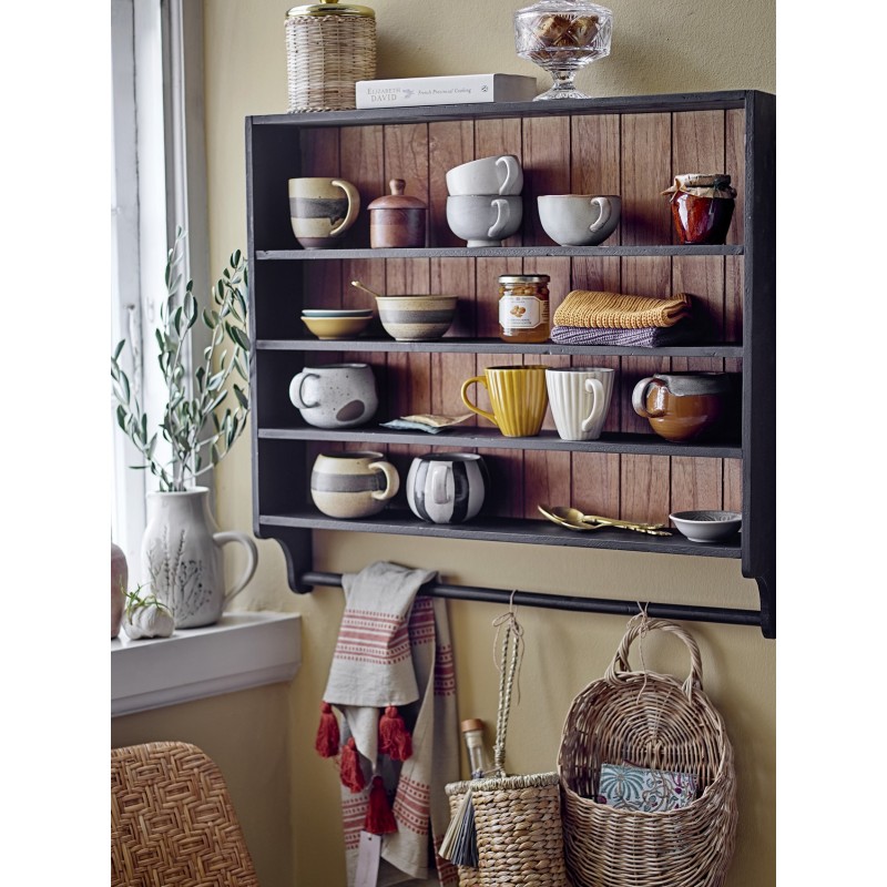 etagere murale ouverte cuisine vaisselle bois noir brun bloomingville