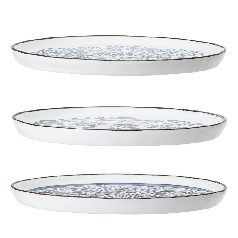 bloomingville assietes peintes main motif fleuri bleu set de 3 molly