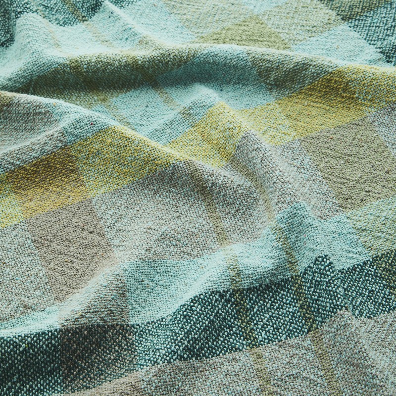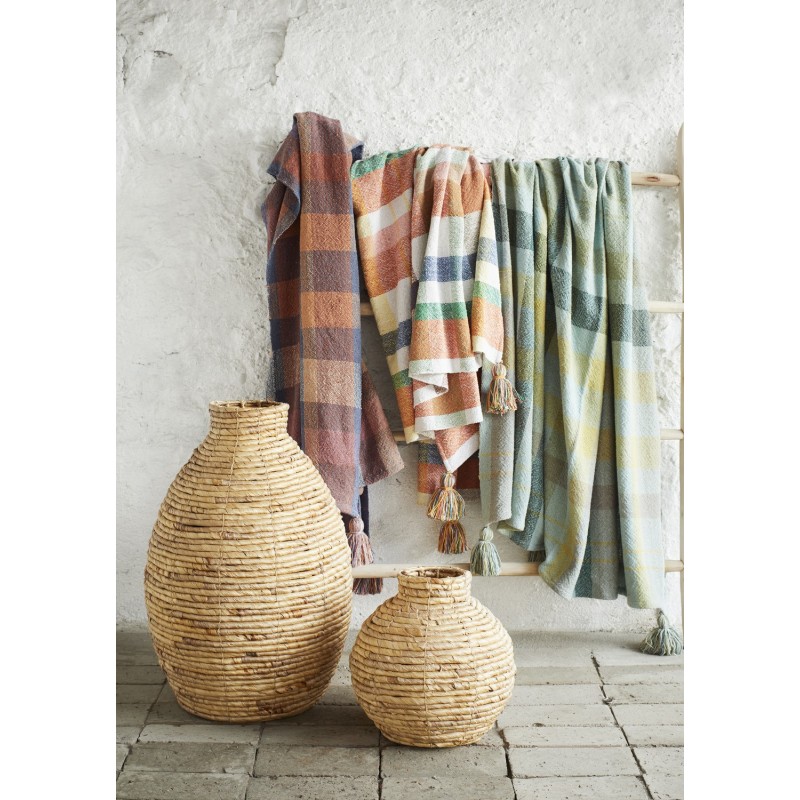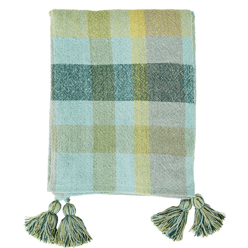 madam stoltz couvre lit a carreaux vert menthe pompons coton recycle