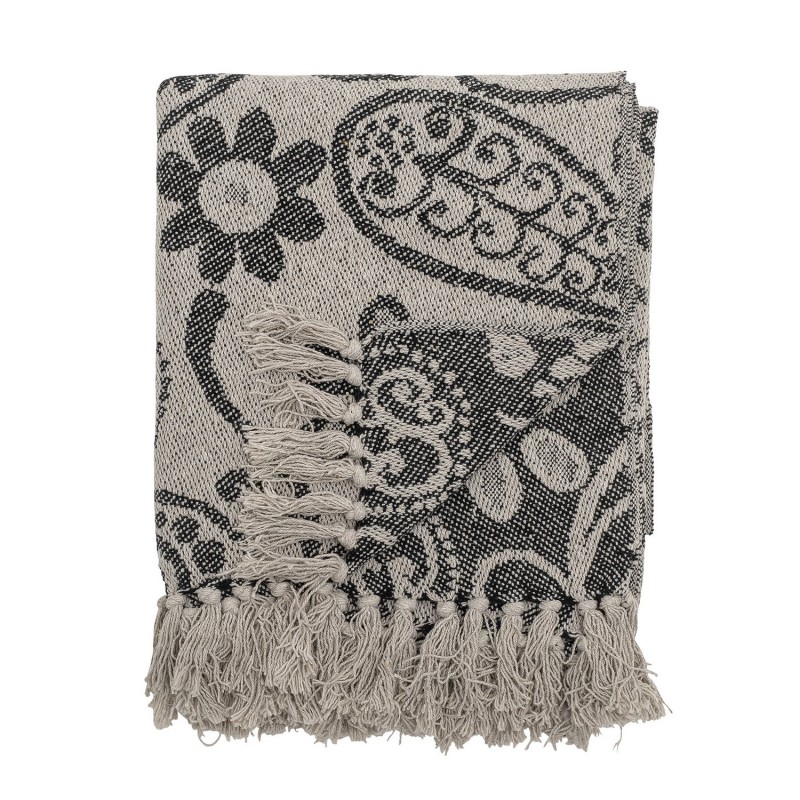 bloomingville plaid noir blanc fleuri coton recyclé stellah