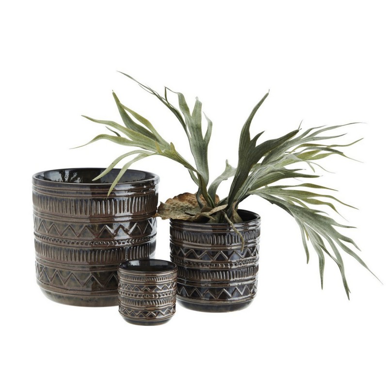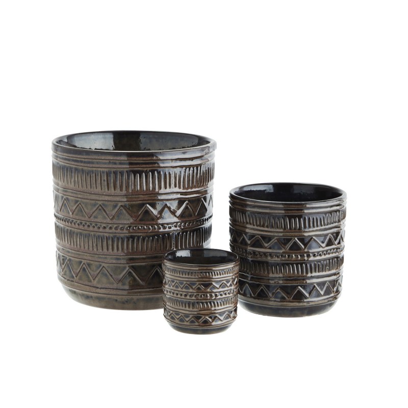pot de fleur gres emaille brun motif decoratif texture madam stoltz