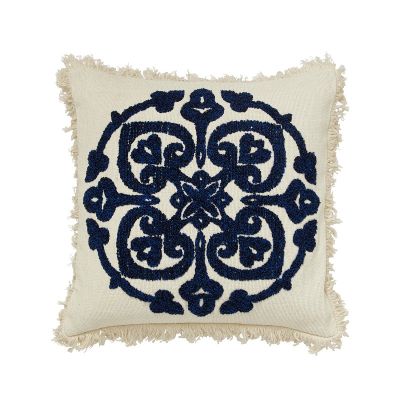 housse coussin blanc ecru bleu motif brode franges nordal ursa