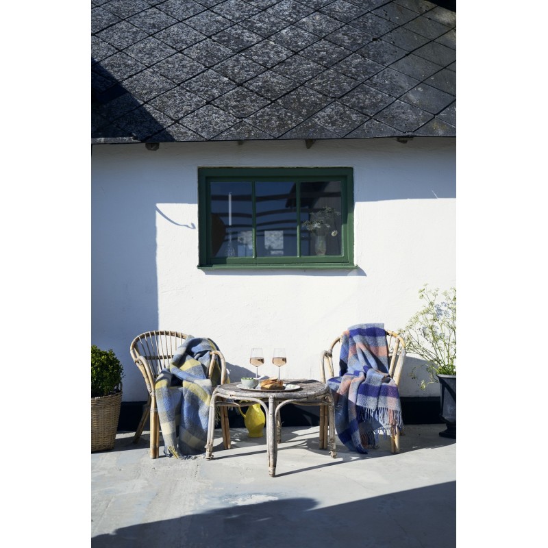 couverture laine agneau carreaux bleu jaune klippan monte carlo