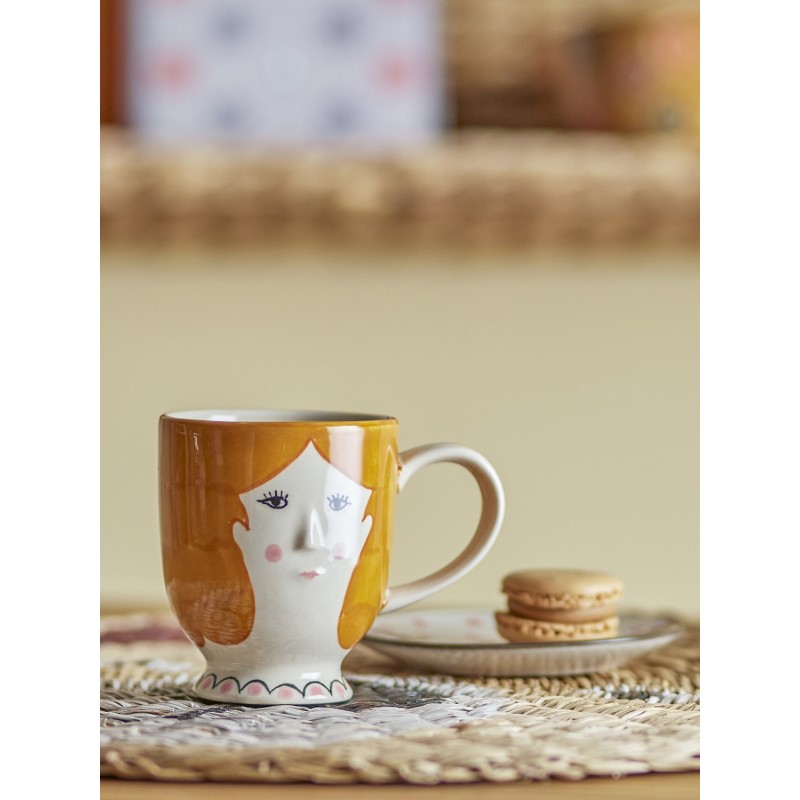 tasse a cafe peinte a la main visage femme bloomingville jaya