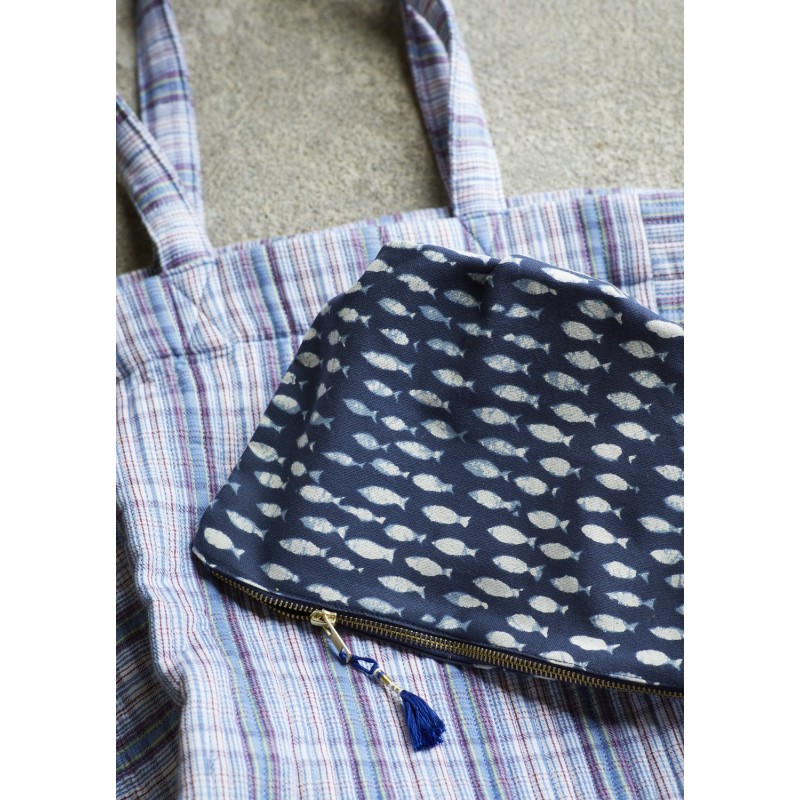 trousse de toilette tissu bleu imprime poissons madam stoltz