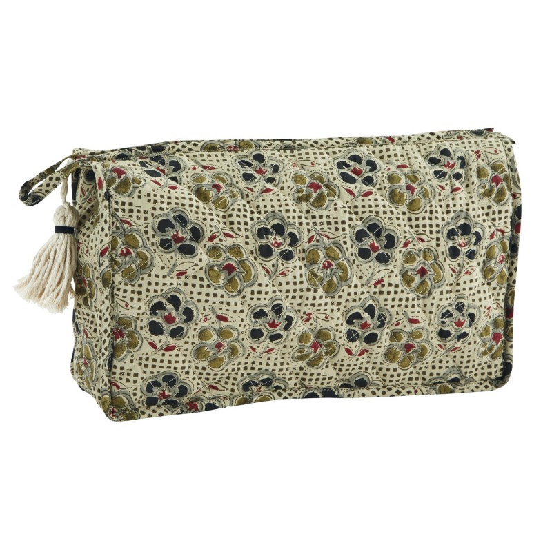 trousse de toilette pompon coton imprime floral vert madam stoltz