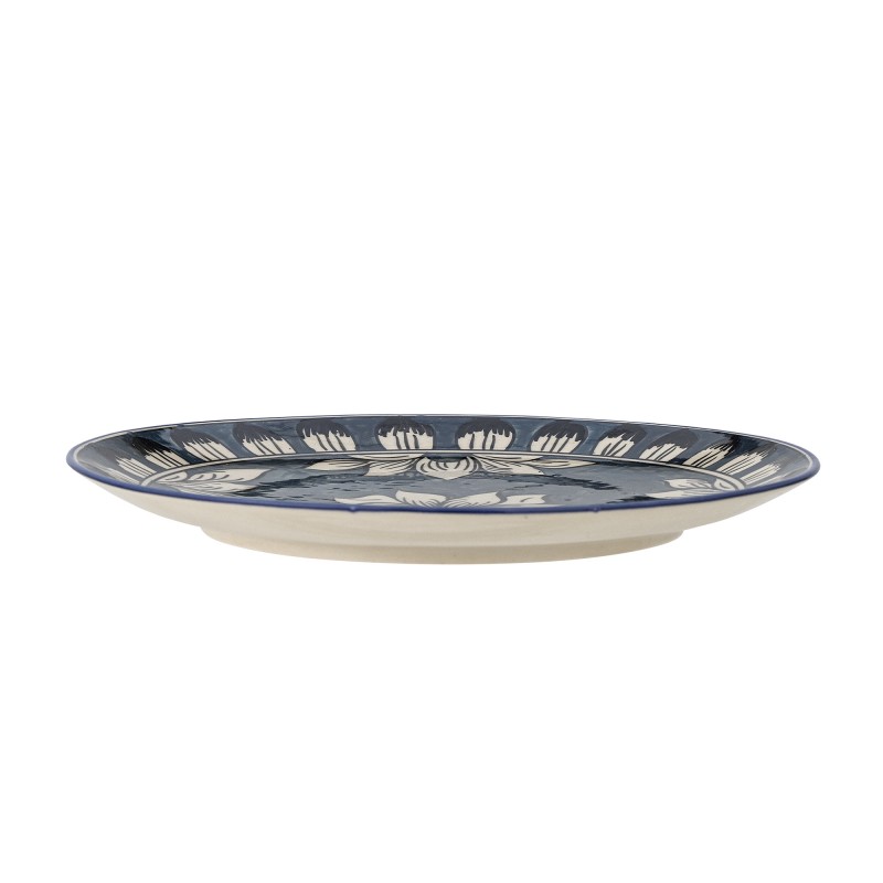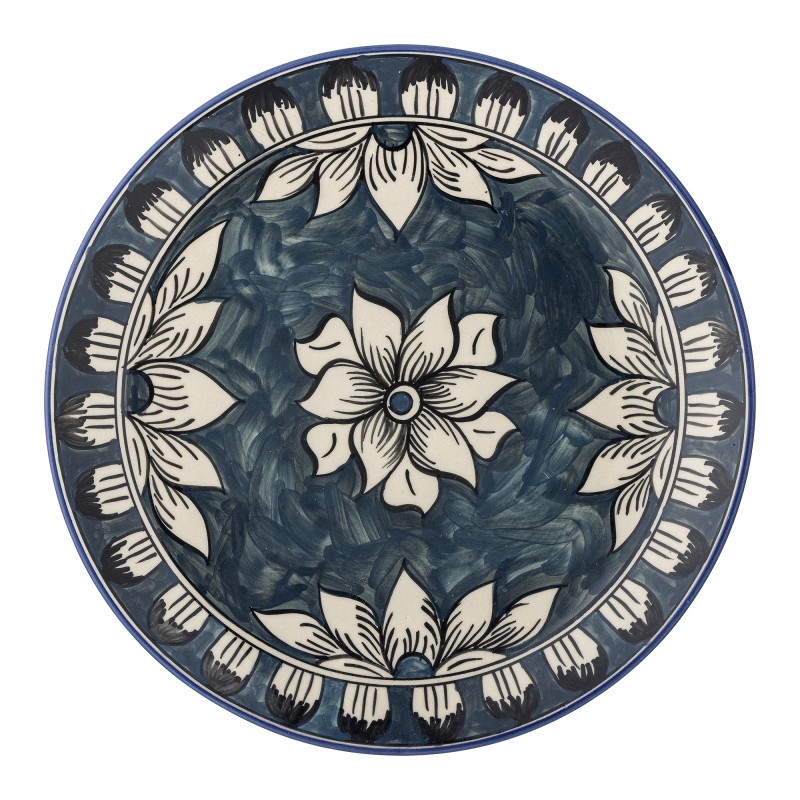 assiette plate peinte la main bleu mediterraneen bloomingville karlie