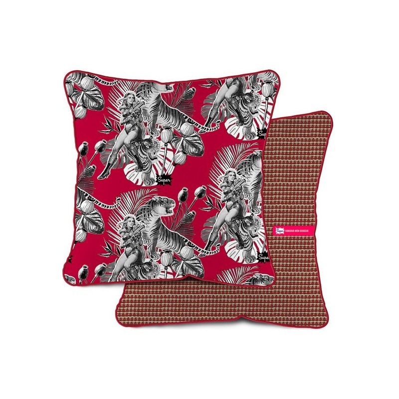 COUSSIN DÉCO ROUGE VELOURS JUNGLE