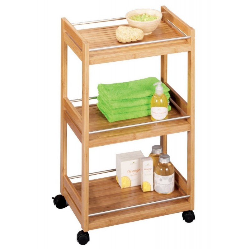 Meuble desserte à roulettes en bois bambou zeller