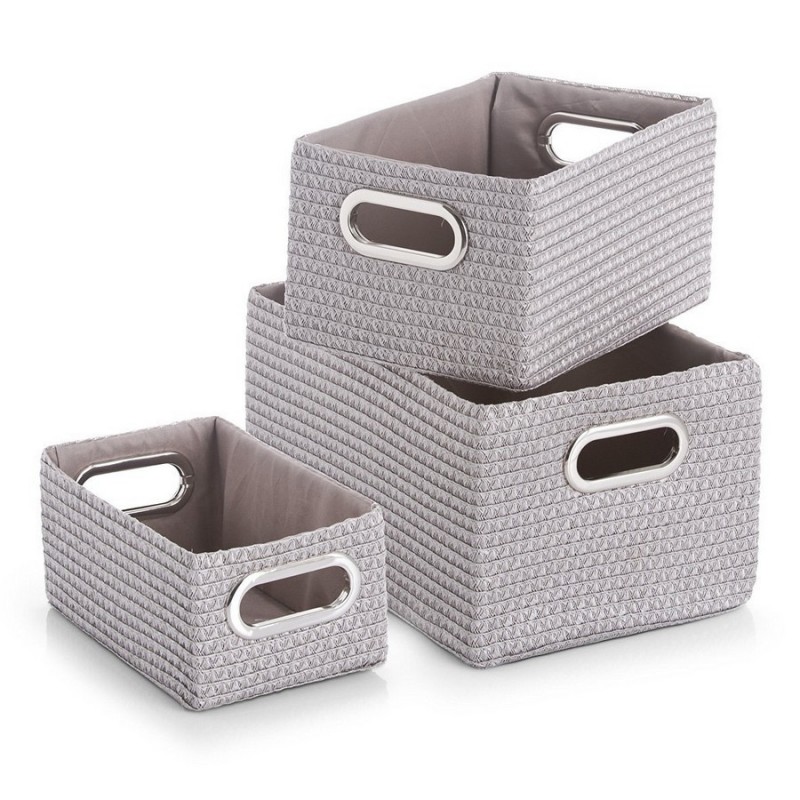 set de 3 paniers de rangement deco tissu gris zeller 14082