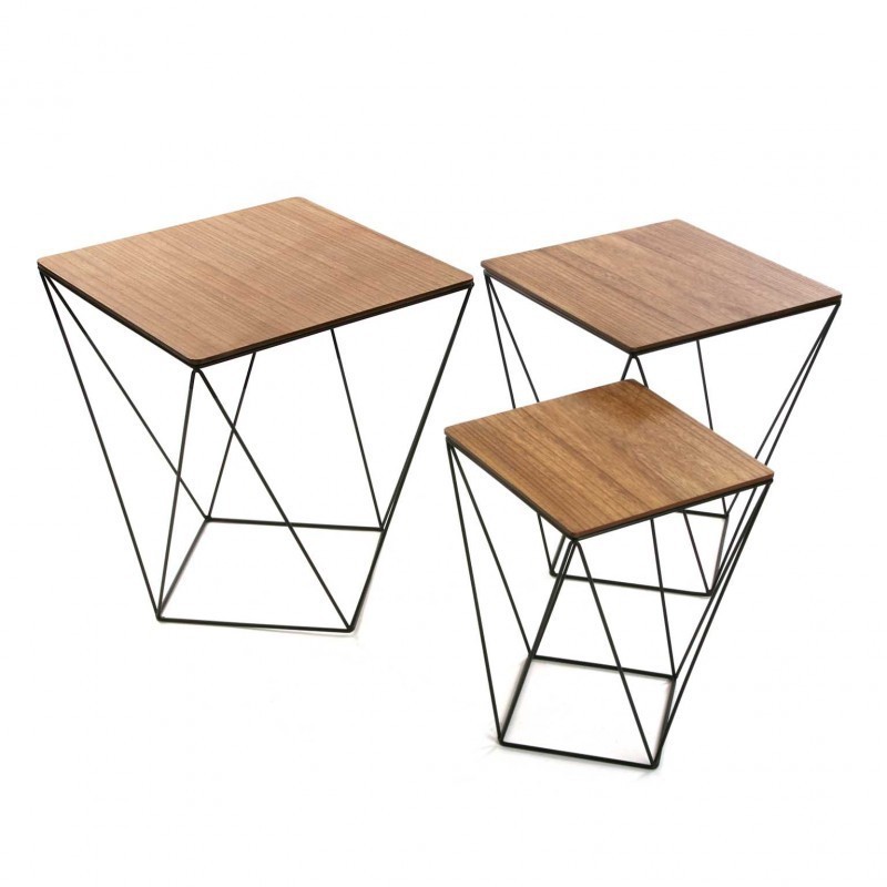 set de 3 tables basses graphiques metal et bois versa black wire 20850012