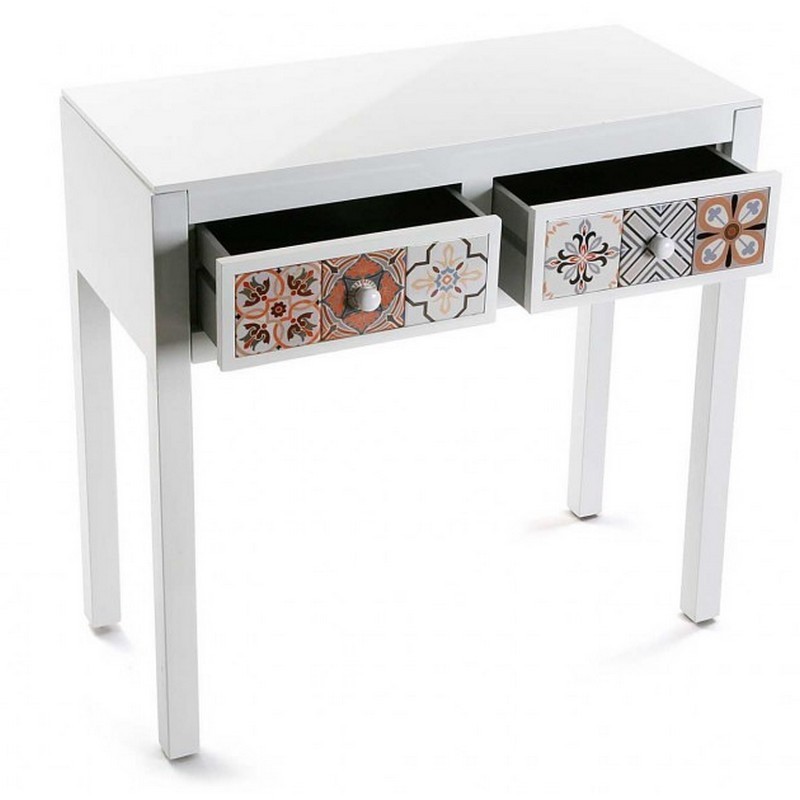 console d entree blanche 2 tiroirs motif oriental versa marrakech