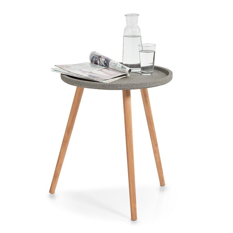 gueridon table basse trois pieds bois plateau gris zeller 17001