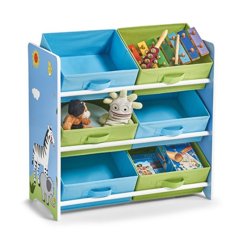 etagere enfant rangement jouets 6 casiers bleu vert zeller 13499