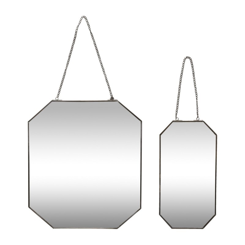 Miroir mural octogonal avec chaine metal noir Hubsch set de 2
