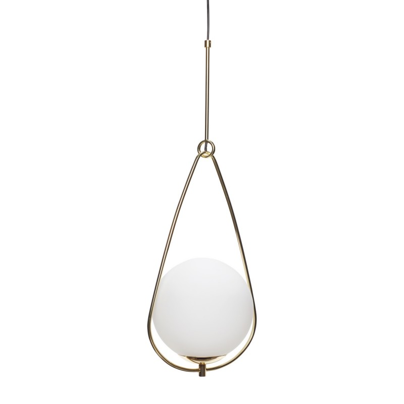 Suspension art deco laiton boule blanche goutte hubsch