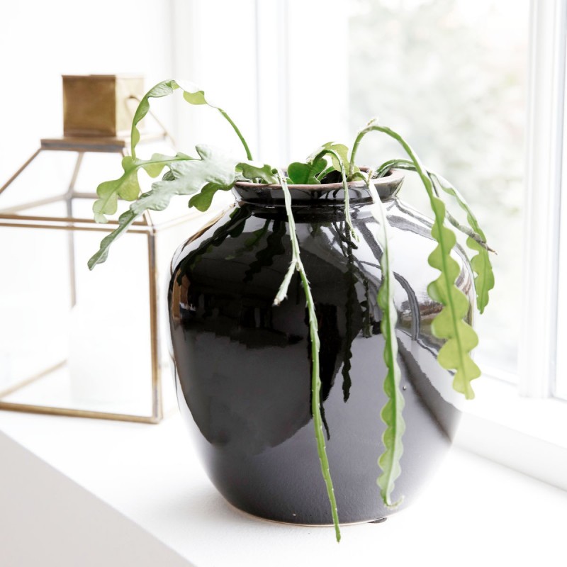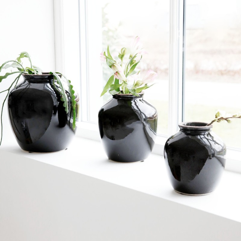 Vase noir gres emaille brillant House Doctor Shine