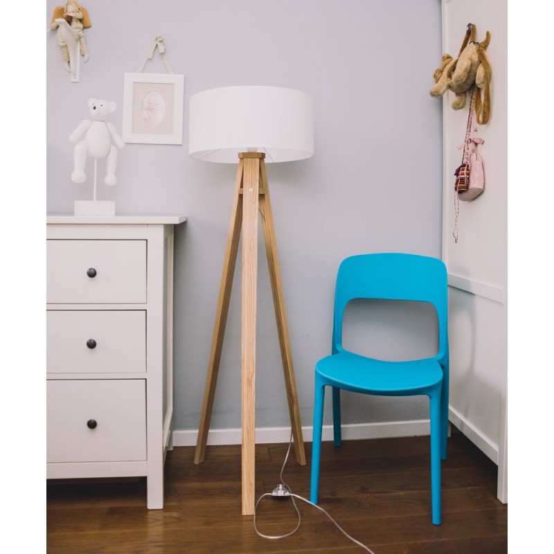 Lampadaire trepied bois massif abat jour blanc ragaba wanda