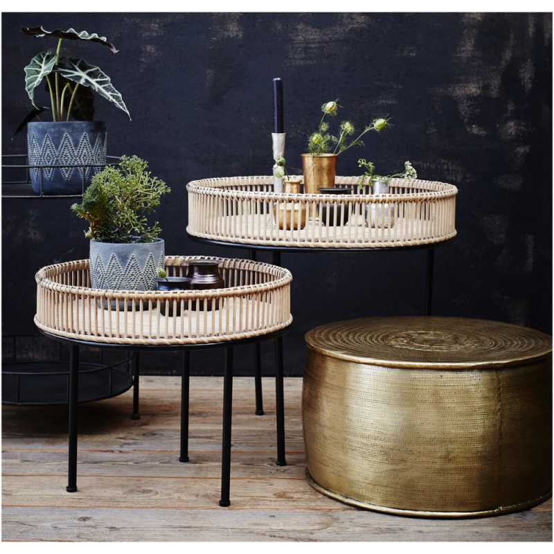Set de 2 tables basses rondes aluminium dore grave Madam Stoltz