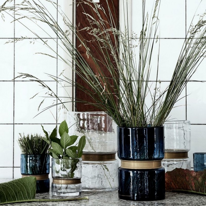 nordal ring vase verre souffle gris bande doree