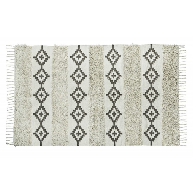 madam stoltz tapis coton blanc ecru noir motifs esprit berbere franges