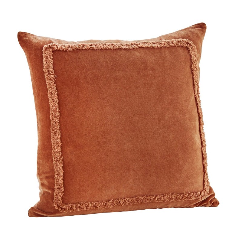 madam stoltz housse de coussin velours orange caramel franges 45 x 45 cm
