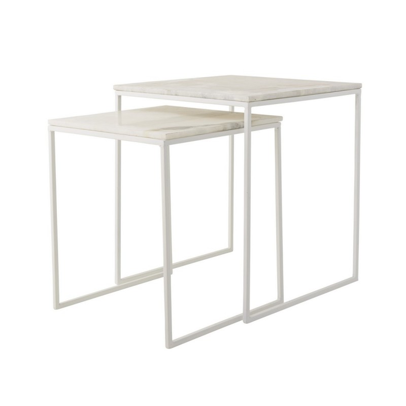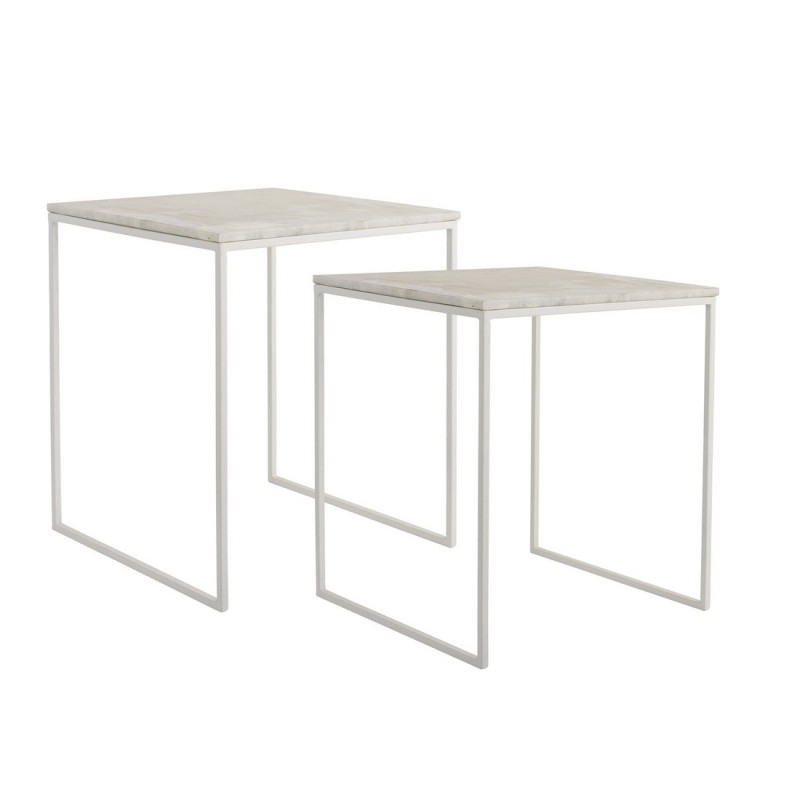 bloomingville set de 2 tables basses carrees gigognes marbre blanc galv