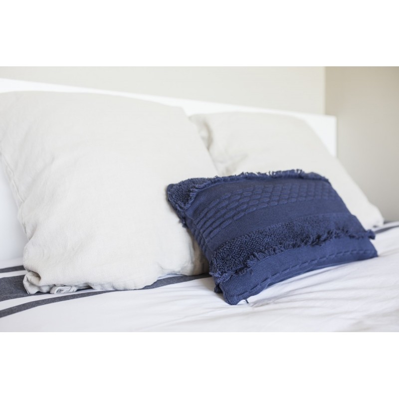 lorena canals coussin coton tricote franges bleu cobalt 30 x 50 cm SC-AIR-ABL