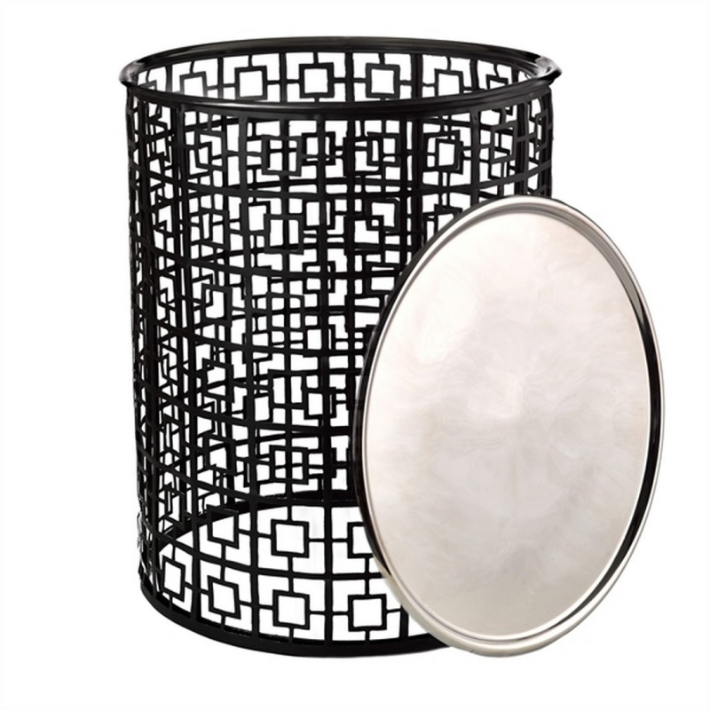 pols potten miami table basse ronde graphique metal noir plateau amovible 300-030-042