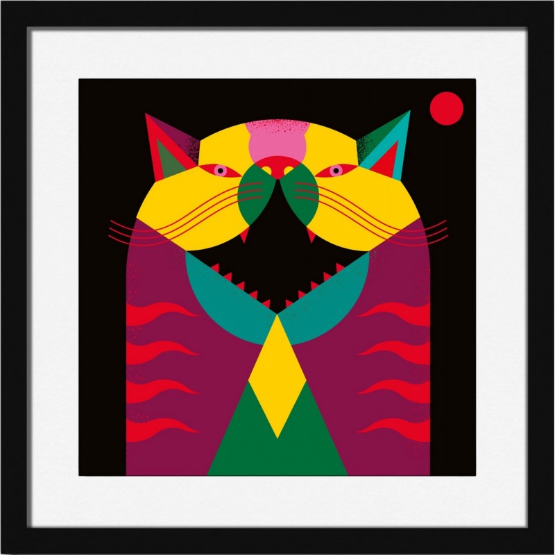 miho say cheese dessin chat graphique cadre noir carre