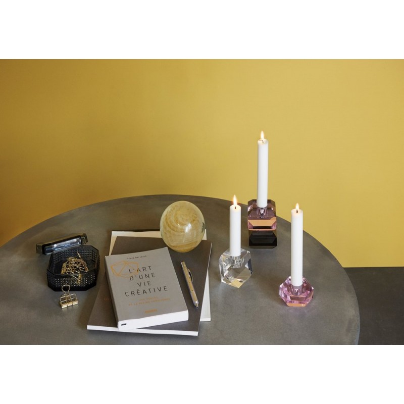 bougeoir cube design verre cristal rose gris hubsch 340704