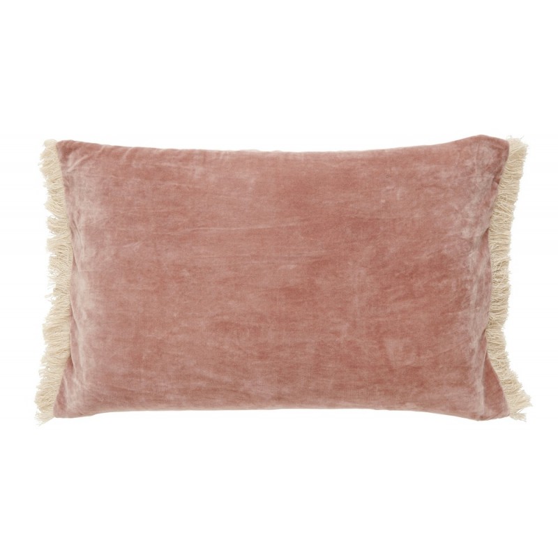 nordal housse de coussin rectangulaire velours rose poudre franges