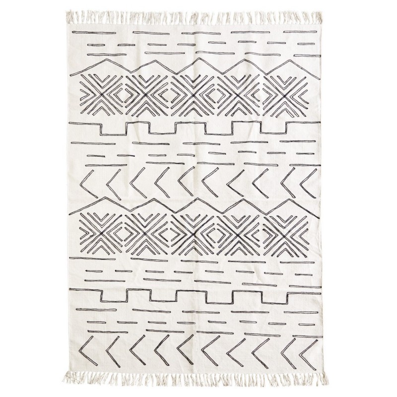 madam stoltz tapis coton blanc ecru motif etnique 120 x 180 cm