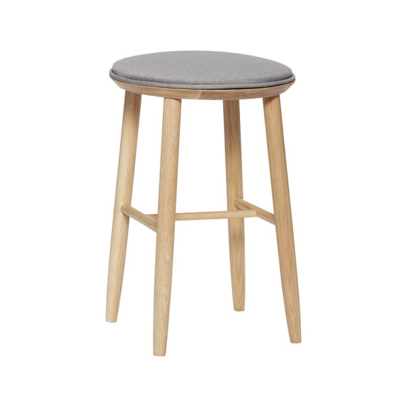 hubsch tabouret de bar rond bois chene coussin gris 880718