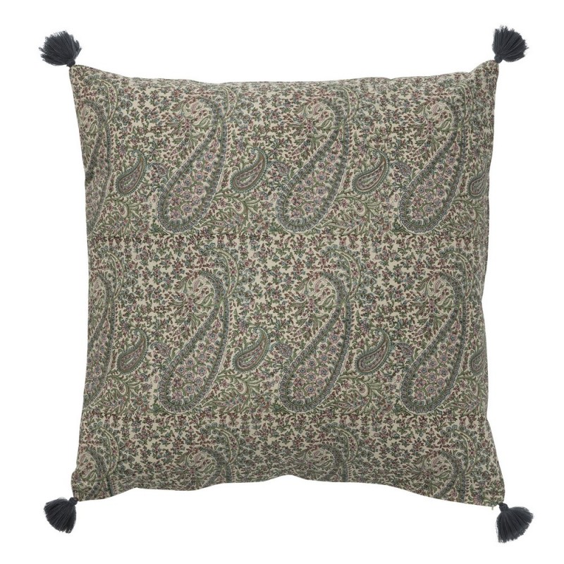 bungalow housse de coussin vintage chic motif cachemire paisley vert