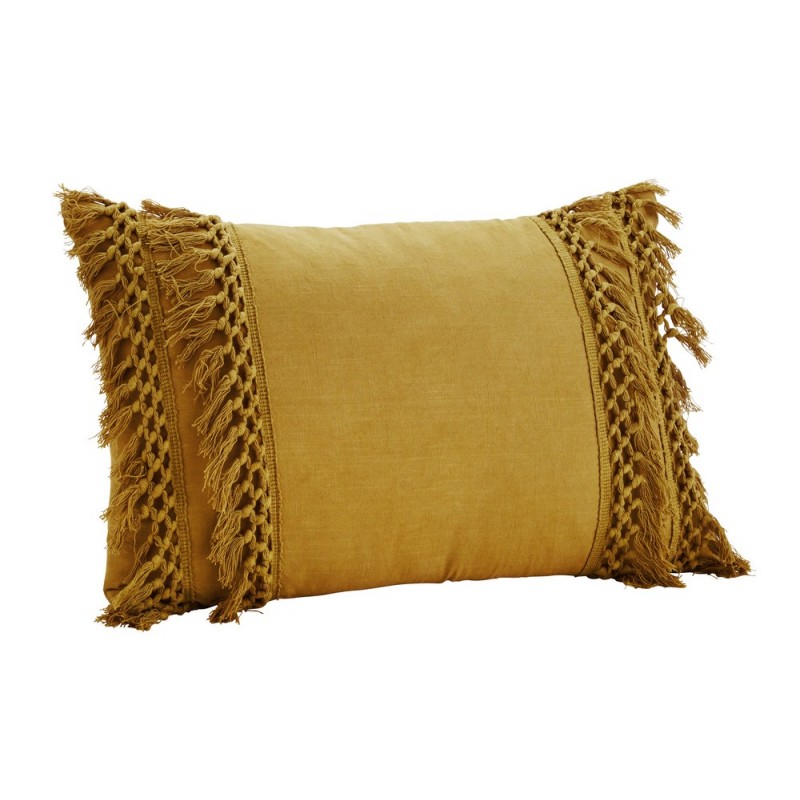 madam stoltz housse coussin rectangulaire coton franges jaune moutarde