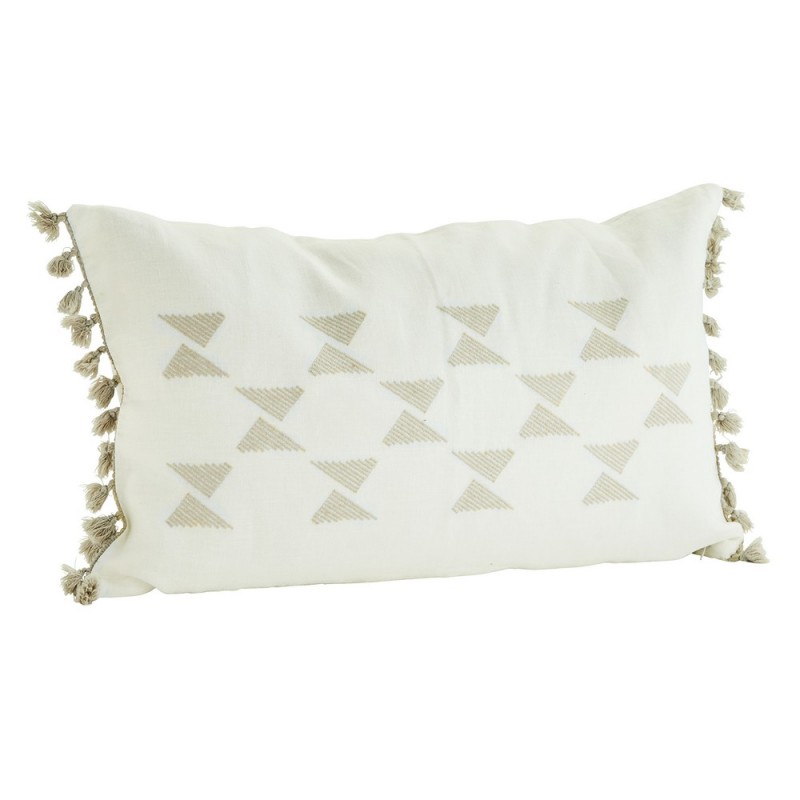 madam stoltz housse de coussin blanc beige motifs brodes pompons