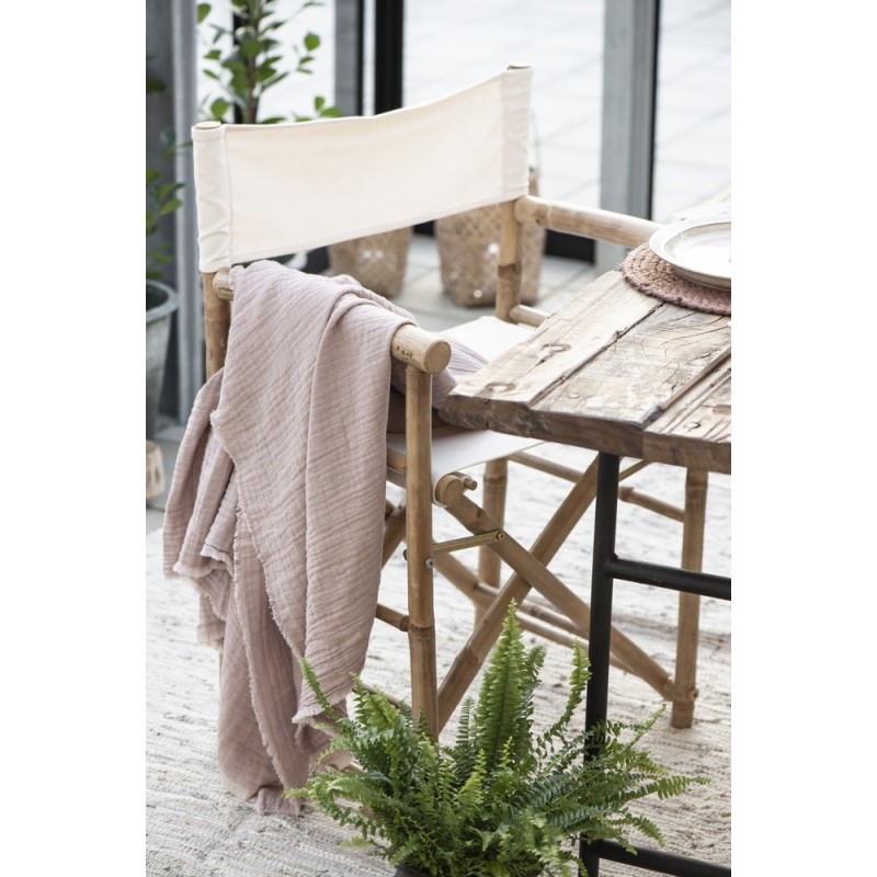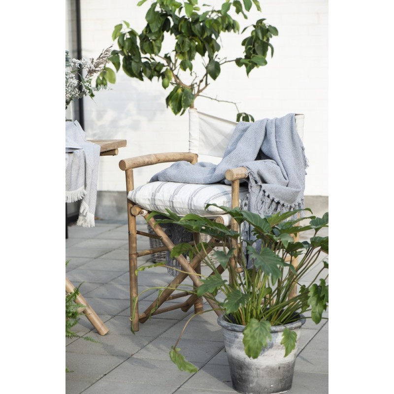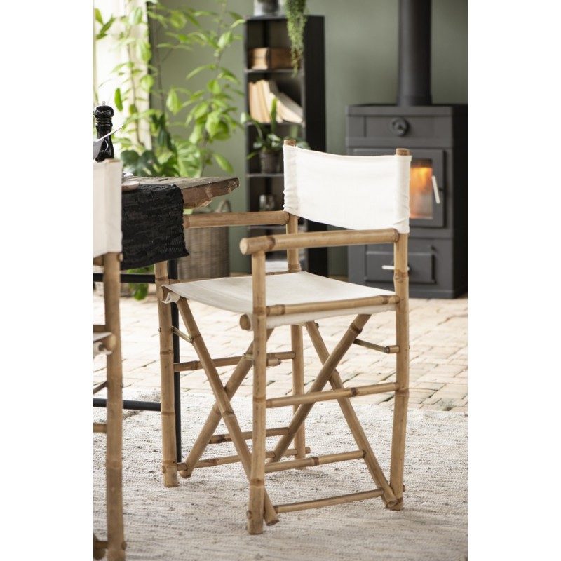 ib laursen chaise pliante accoudoirs bois bambou toile blanche 2297-00