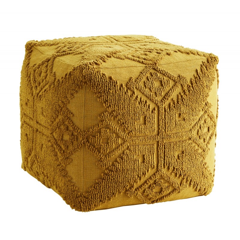madam stoltz pouf tissu jaune moutarde motifs brodes style boheme