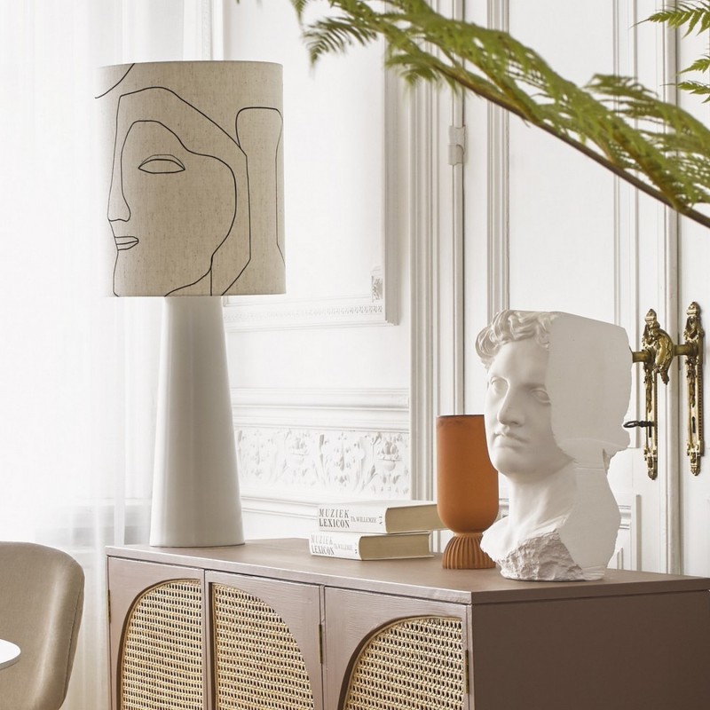 hk living abat jour pour lampe de table visages lin blanc ecru
